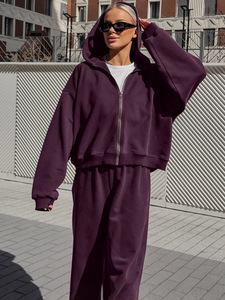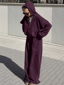 欧美时尚休闲套装女2025秋季新款百搭潮流连帽卫衣开衫长裤二件套