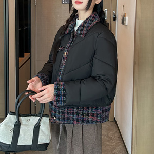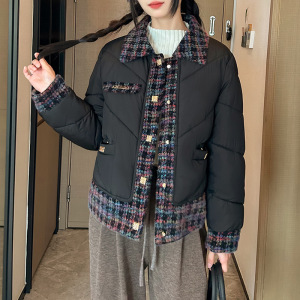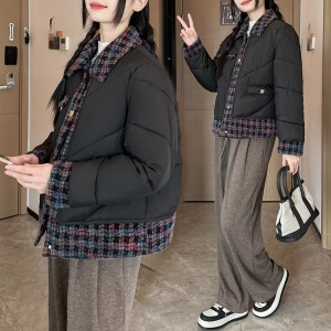 假两件羽绒棉服女2025冬新款韩版洋气衬衣拼接时尚休闲保暖短外套