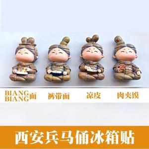 西安兵马俑冰箱贴美食卡通兵小将文创旅游纪念礼品肉夹馍biang面