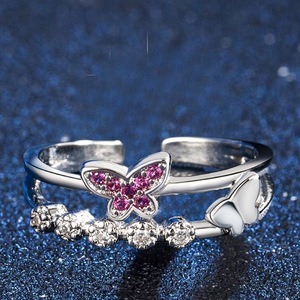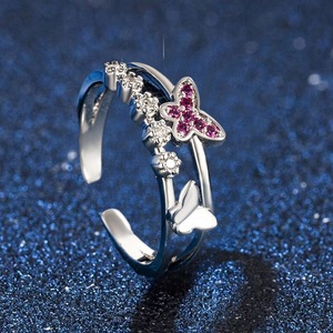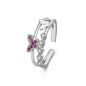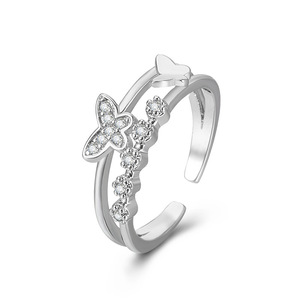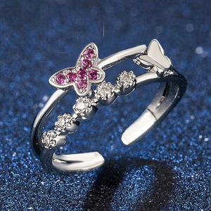 欧美跨境气质微镶排钻清新蝴蝶戒指女时尚韩版双层指环简约仙气