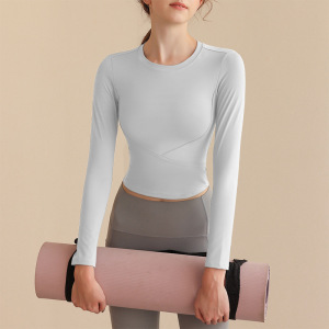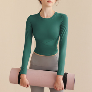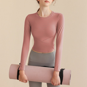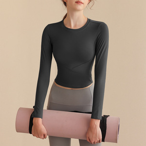 夏季普拉提瑜伽服T恤运动速干长袖女跑步上衣吸汗健身训练紧身衣