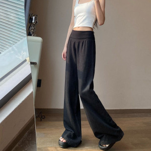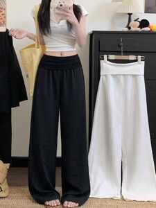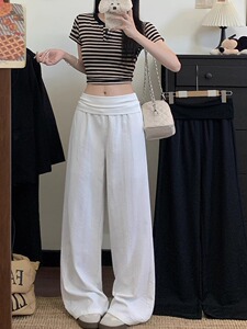 白色垂感休闲直筒裤女2025秋季新款百搭宽松显瘦慵懒风垂感阔腿裤