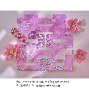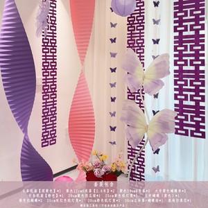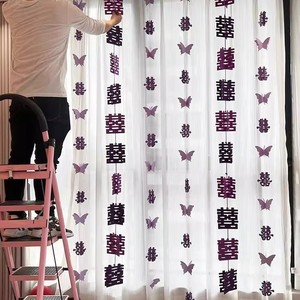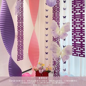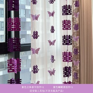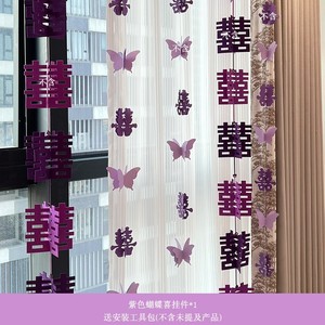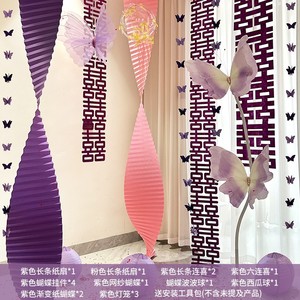 紫色婚房氛围布置窗帘装饰结婚新房客厅卧室喜字长条拉花婚礼