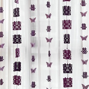 【主图款】紫色蝴蝶喜字挂件6条装