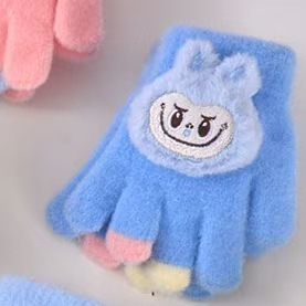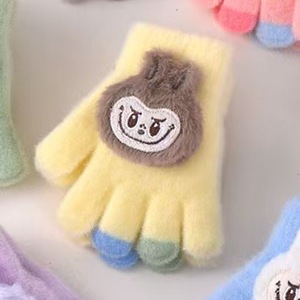 卡通毛绒儿童手套冬季保暖加厚韩版可爱小兔宝宝写字五指分指手套