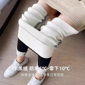 秋冬季高腰收腹加绒瑜伽芭比大码显瘦保暖打底加厚羊羔绒鲨鱼裤女