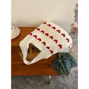 韩系爱心编织包新款大容量慵懒感单肩包小众设计感通勤托特包