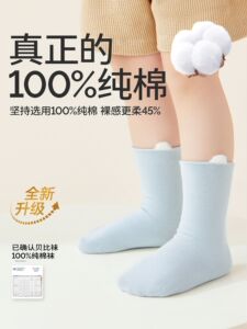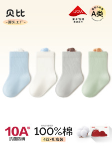 贝比童袜秋冬新款宝宝袜子中筒纯棉婴儿袜子女童全棉纯色男童袜子