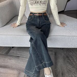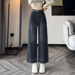 小个子八分阔腿牛仔裤女春夏新款高腰宽松显高显瘦九分直筒裤