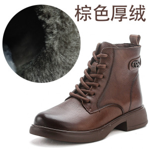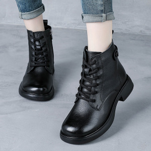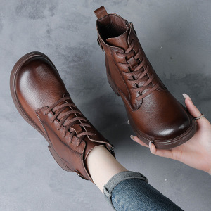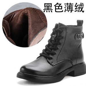 全牛皮秋冬季新款复古英伦风粗跟马丁靴真皮短靴子女百搭系带皮靴