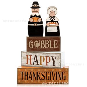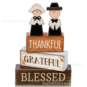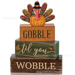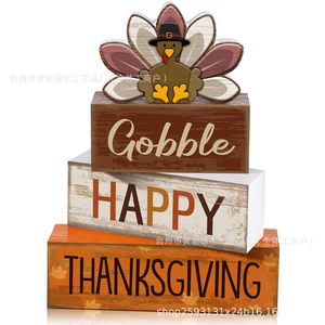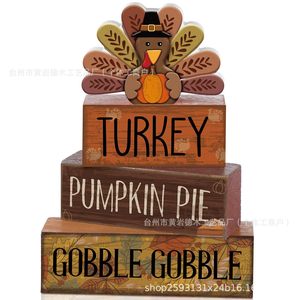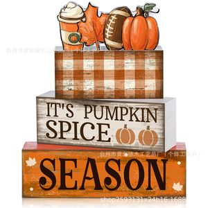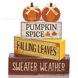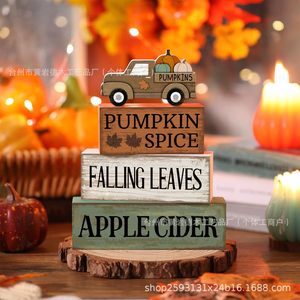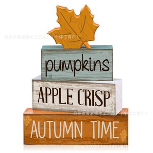 跨境新品感恩节桌面摆件丰收节日装饰品秋季枫叶套装木质工艺品