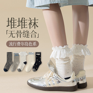 花边饰品蝴蝶结中筒袜女无骨时尚ins潮袜jk袜子配饰春秋季设计感