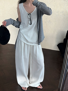 NS慵懒休闲韩系女夏季新款遛弯纸片人开衫+无袖背心套装0895