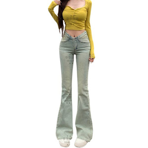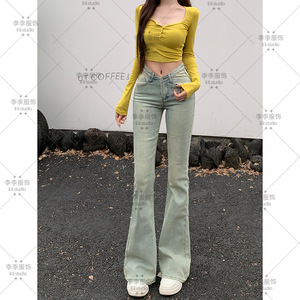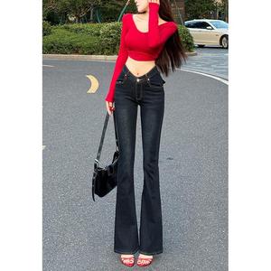 辣妹低腰V腰微喇牛仔裤女2025年秋季新款显瘦弹力提臀怀旧喇叭裤