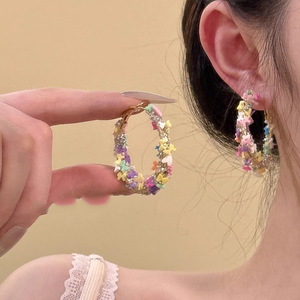 公主出逃~春夏彩色多巴胺花朵耳圈女度假风海边拍照耳环独特耳饰