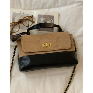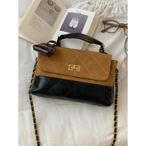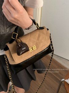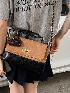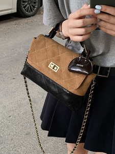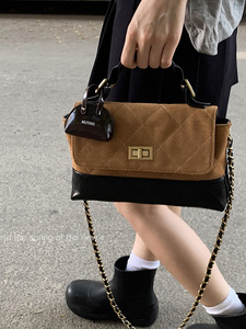 秋季复古感手提包小拎包女2025新款菱格麂皮绒小方包链条斜挎包