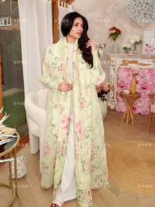 中东跨境阿拜亚开衫外套三宅褶皱印花长袖披风沙特阿拉伯大码女装