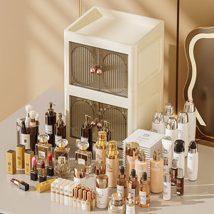 可折叠双开门收纳盒桌面多层文具置物架家用化妆品护肤品收纳柜子
