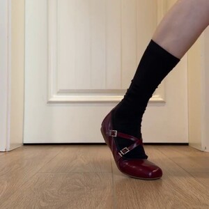 羊皮版~复古浅口交叉扣带玛丽珍鞋女2025新款一脚蹬软底圆头单鞋