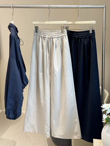 松紧腰系带休闲裤女2025秋季新款纯色宽松显瘦百搭简约直筒阔腿裤