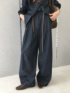 THINK十三行时髦精收!牛仔套装女25牛仔衬衫松紧腰裤子(配丝巾