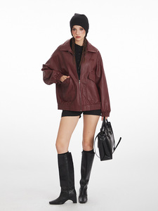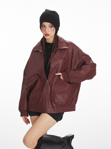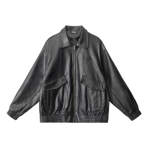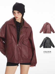 HeyHenry美式复古长袖秋冬季2025新款皮衣外套男女pu宽松翻领夹克