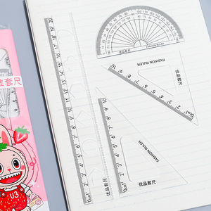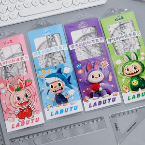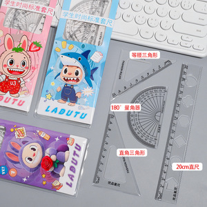卡通拉嘟兔小学生套尺四件套20cm透明尺子套装三角尺量角器直尺