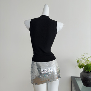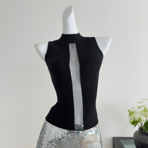 一顿摘星漂亮饭——高领镂空“网纱”毛织背心