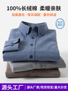 纯棉磨毛男士衬衫长袖春秋棉衬衣男2025新款中年抗皱商务休闲男装