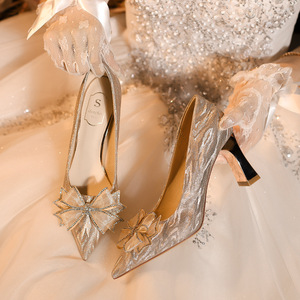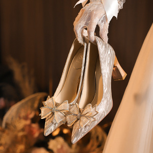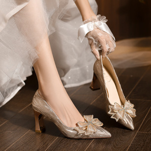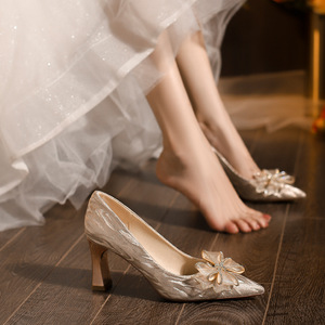 C783-19单鞋法式香槟色婚鞋女新娘鞋2025年新款禾秀婚纱两穿32-43