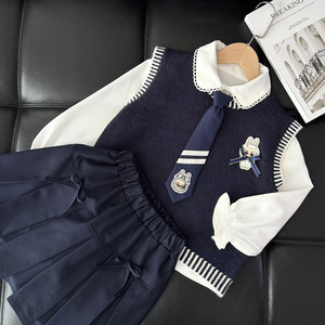 儿童长袖翻领衬衫无袖马甲短裙四件套秋季新款学院风小兔学生套装