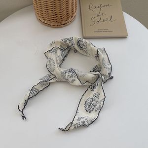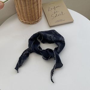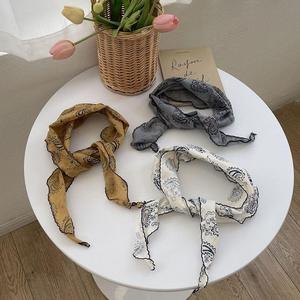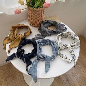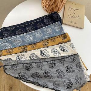 复古棉麻腰果花三角巾女 日系民族风镂空小领巾包包装饰丝巾百搭