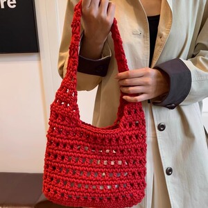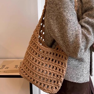大容量通勤编织包包女春夏新复古镂空针织包松弛感网格沙滩包包