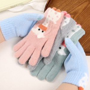 跨境冬季保暖防风成人加绒加厚毛绒手套五指触屏针织防寒骑车户外