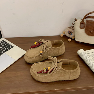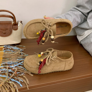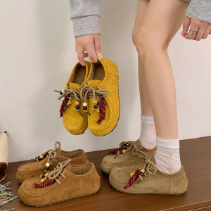厚底串珠勃肯鞋女2025新款复古百搭内增高系带休闲鞋单鞋袋鼠鞋子