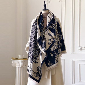 新款复古印花花卉仿羊绒女士围巾冬时尚高级气质加厚保暖百搭披肩