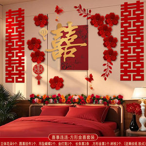 结婚喜字装饰拉花新房客厅沙发背景墙男女方婚房布置套装婚礼用品