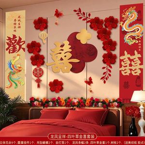 (婚房背景墙)龙凤呈祥-四叶草金喜套装