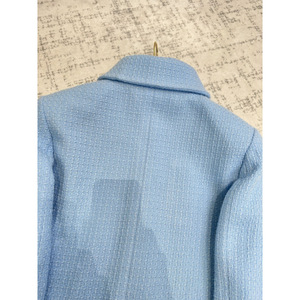 深圳南油货~25秋冬新品小香风蓝色花呢编织外套清新气质