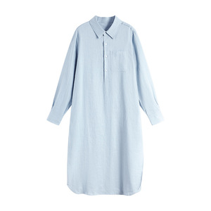 法式高级感翻领长袖亚麻连衣裙女2025夏季新款设计感小众显瘦裙子