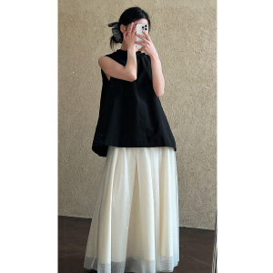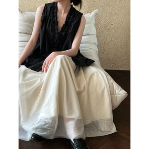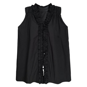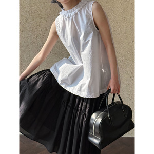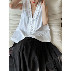 NS 无袖小众设计木耳边衬衫女新款法式花瓣领正反两穿小衫3529