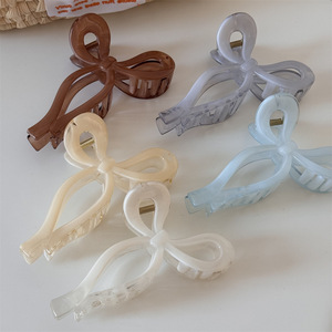 韩版果冻色飘带蝴蝶结抓夹新款气质百搭后脑勺盘发鲨鱼夹发饰头饰