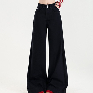 2025春夏新款阔腿牛仔裤女学院风高腰休闲宽松垂感丹宁拖地裤子