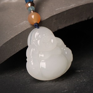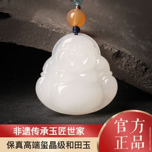 和田玉羊脂玉弥勒佛大肚佛笑佛吊坠项链女本命年属兔玉石挂件玉坠