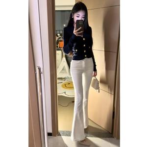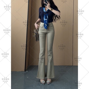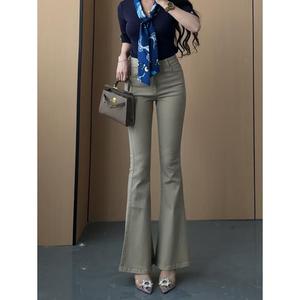 卡其色百搭知性微喇牛仔裤女2025年夏季新款高腰显瘦显高喇叭裤
