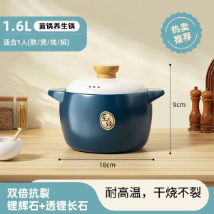 砂锅家用耐高温干烧不裂陶瓷煲汤汤煲燃气煤气灶专用瓦煲炖锅康舒