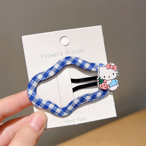 可爱kt猫蓝色格子发夹女侧边夹刘海夹碎发bb夹子发卡头饰女高级感