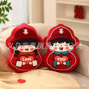 新婚礼物喜字抱枕压床娃娃一对结婚喜娃婚庆公仔中式婚礼摆件批发
