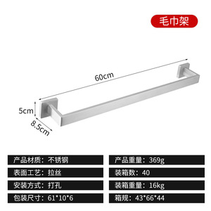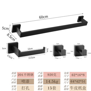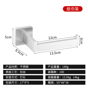 跨境不锈钢纸巾架浴室厕纸架五件套挂件免打孔纸巾毛巾架方型套装