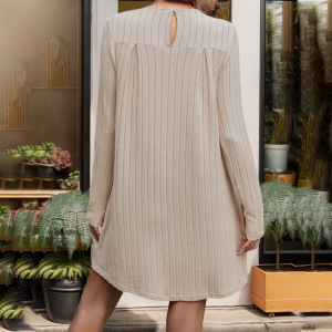 欧洲外贸2025新款秋季跨境休闲简约风磨毛坑条压褶圆领纯色直筒裙